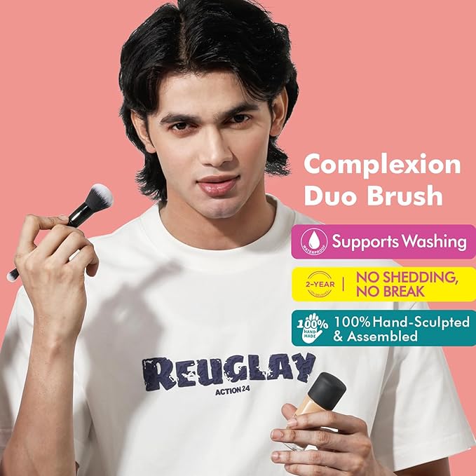 Bueart Design Complexion Duo Brush and Liquid & Bronzer Contour Makeup brushes set with ultra-soft dense hair Double-ended for Foundation Liquid Cream Concealer,Vegan and Cruelty-Free,M18