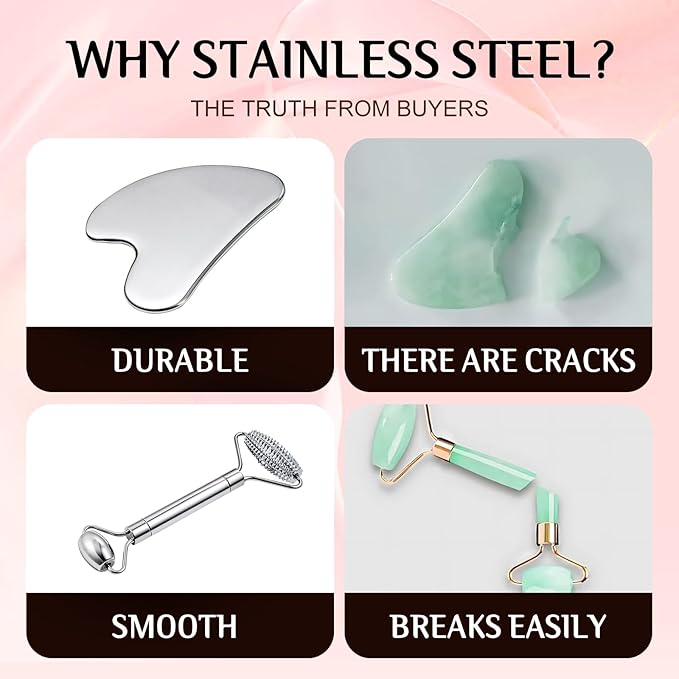 - 【Sturdy And Durable】This gua sha tool for face and stainless steel face roller are made entirely of metal, offering a cooling, refreshing feel that elevates your skincare routine. Ideal for those who love high-quality face massager tools