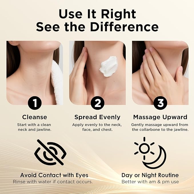 - EXPERTLY FORMULATED FOR MAXIMUM EFFECTIVENESS: Developed with precision, our lightweight, luxurious neck cream—engineered for targeted neck tightening and lifting—is expertly balanced to tighten, firm, and improve the elasticity of the delicate neck and décolleté area (outperforming generic skin tightening cream for body in this specific zone). With continuous use, it provides day-long hydration, leaving the skin visibly lifted, smooth, and nourished—rivaling the results of premium firming neck cream and neck creams for tightening and firming.