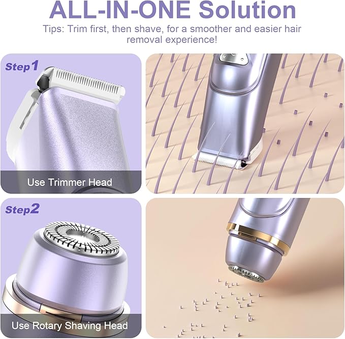 - Painless & Gentle Lady Shaver: Dual head shaver ideal women trimmer for pubic hair, ensuring a pain-free, irritation-free grooming experience, especially in sensitive areas