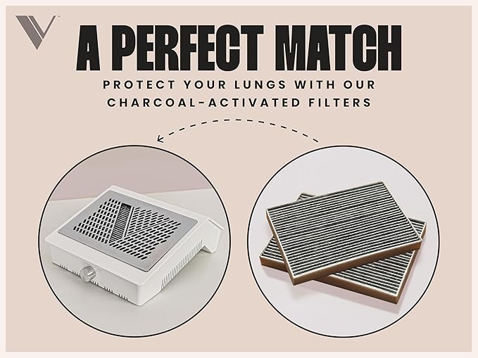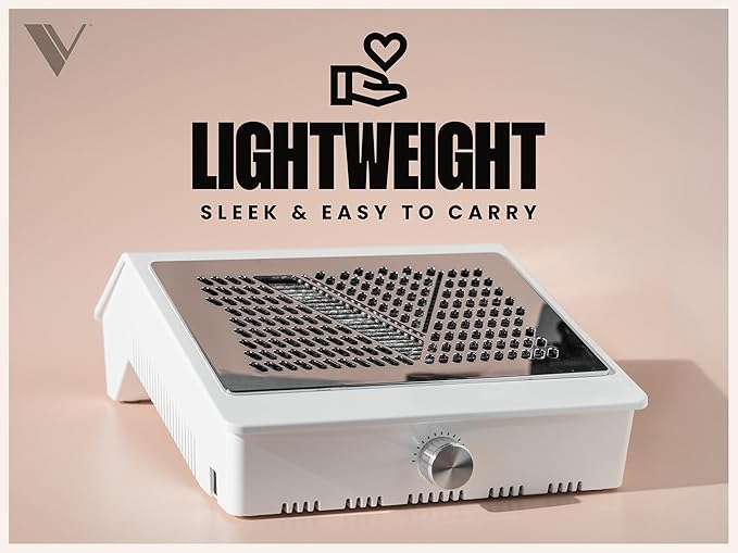 V Beauty Pure Nail Fan Dust Collector - Nail Dust Extractor and Catcher Vacuum, Sleek, Lightweight, and Adjustable Salon Fan with Activated Charcoal Filter, Acetone-Resistant Design