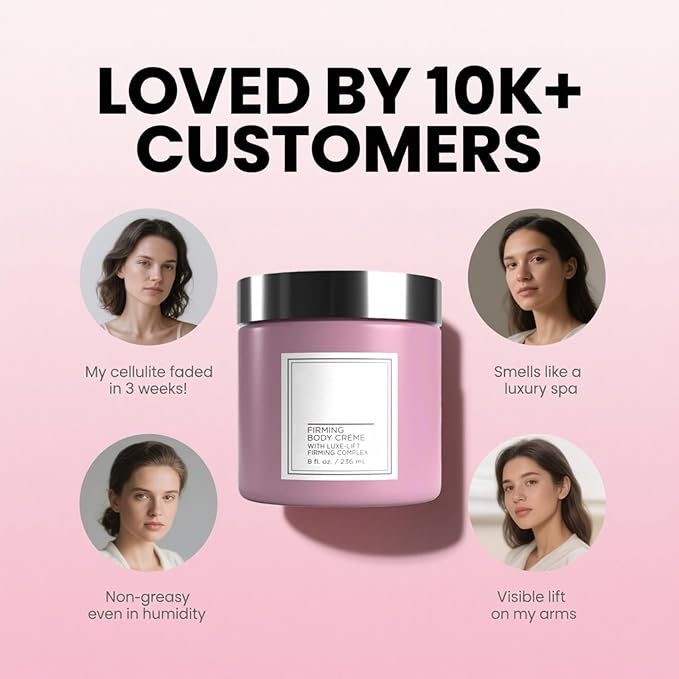 Champagne Lift Body Creme, Champagne Lift Hydrating Firming Body Cream for Crepey Skin, Targets Dry & Sagging Skin on Arms, Legs | Powered by Pink Pepperslim & Luxe-Lift Firming Complex - 8 oz.