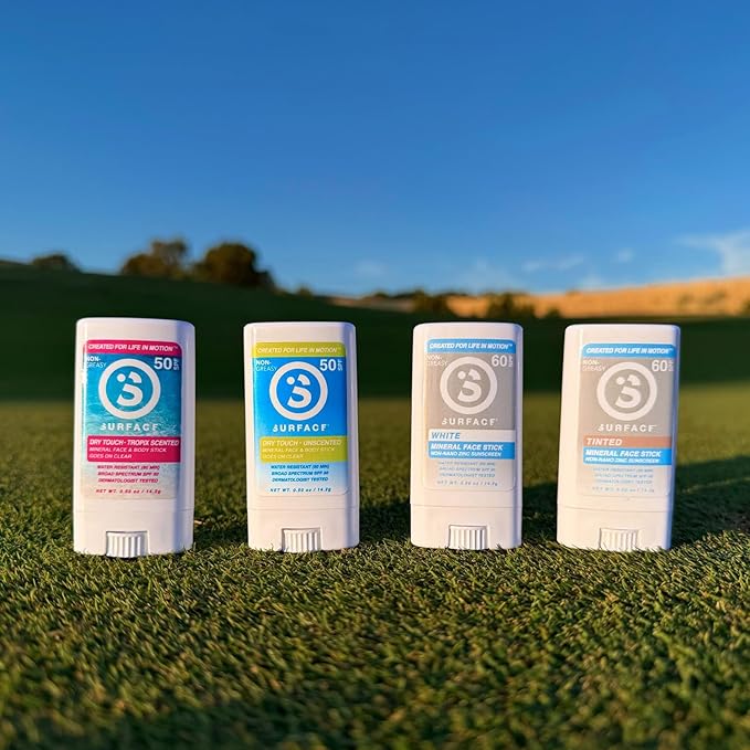 Surface Mineral Sunscreen Face Stick SPF 60, Lightweight Non-Nano Zinc Oxide Formula, Reef Friendly, Broad Spectrum UVA UVB Protection, Water Resistant Sun Care for 80 Minutes, Tinted, 0.5oz